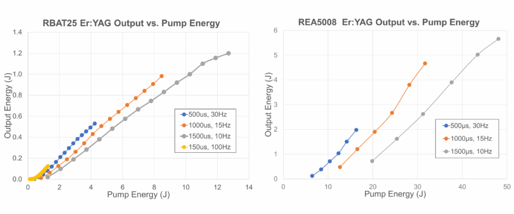 Conversely, the 5 mm REA system produced multi-Joule output levels at lower repetition rates, confirming its potential for laser sources where peak power is prioritized over speed. These findings highlight the adaptability of CEO’s DPSS module design: from compact, fast-pulsing Er:YAG systems to robust, high-energy configurations, the architecture remains consistent, modular, and thermally efficient.